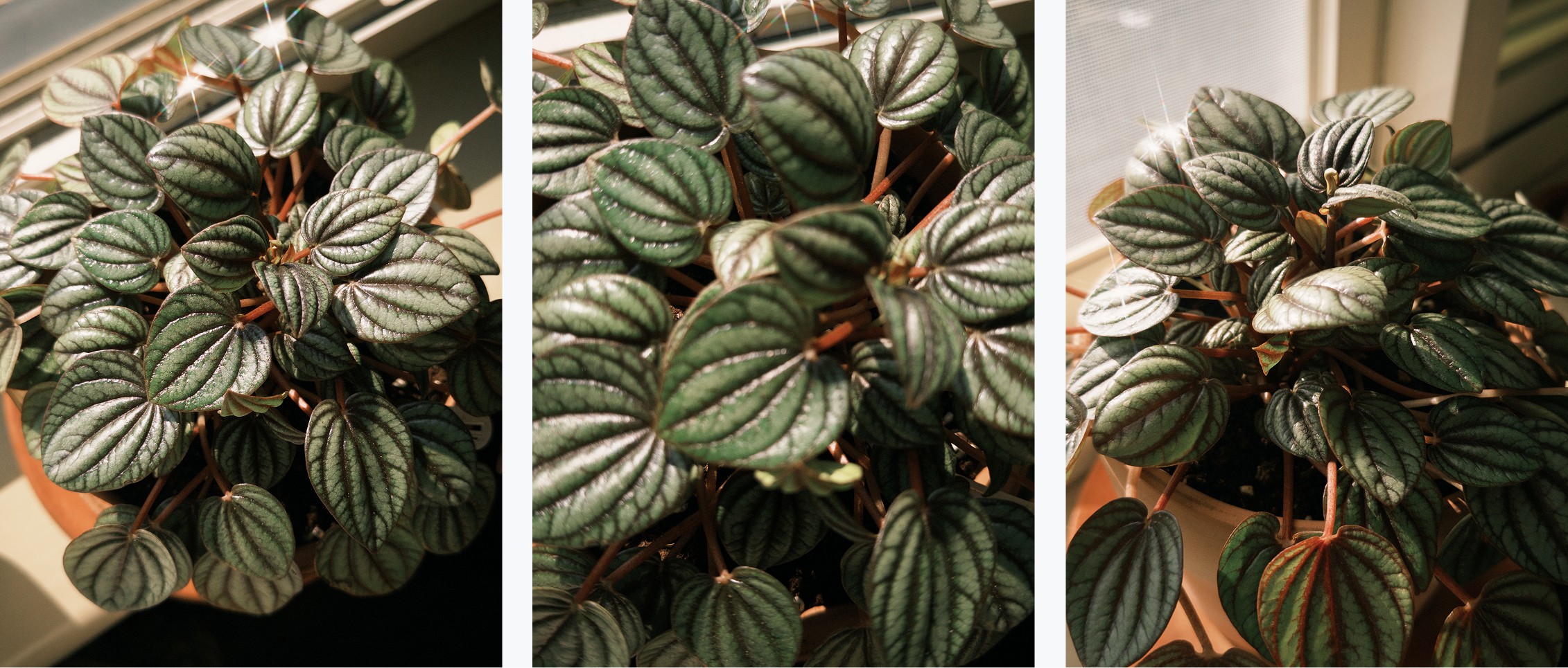 帶他回家剛好是最適合椒草生長的秋末。每一天都跟他說「你真漂亮」,有時候還會端著他們到處展示。此話傳到花藝店老闆耳裡,他說:植物最喜歡聽這種膚淺的稱讚了!不論是真是假,他們聽到就會長得更好唷!