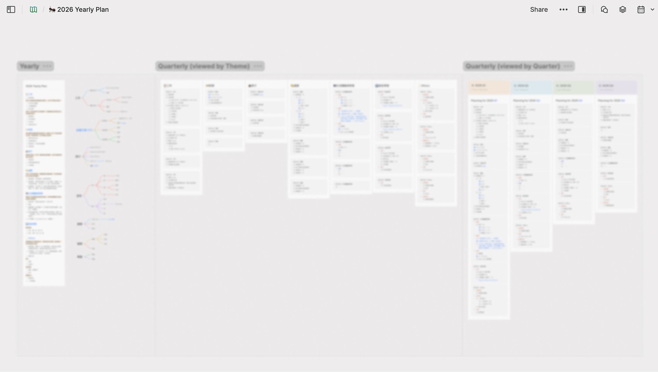 從各面向「想成為的自己」 展開,mindmap 發想關鍵的目標,再以時間落成每季、每月可執行的具體任務。為了對抗自己頑強的耍賴執行力,也借助 Heptabase Journal 的功能,將需要完成的事項直接 assign 執行日期,讓自己更有意識